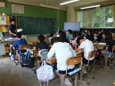 1年生は防犯教室で野田警察の方から「いかのおすし」の