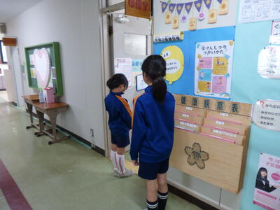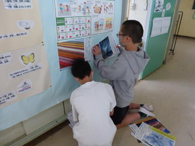 掲示委員会の仕事をする6年生。ありがとうございます。