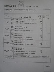 みなさんには、2冊(さつ)のファイルを準備(じゅんび)しました。今日の家庭訪問(かていほうもん)で1冊目のファイルを渡(わた)します。このファイルには、「1週間の計画表(けいかくひょう)」と「毎日の学習プリント」がとじてあります。