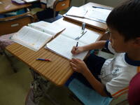 2年生 自分の考えをノートに書いています。よく考えていますね。