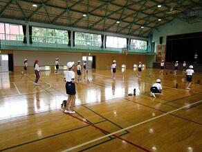 1年生の体育の様子です。係の子の指示に従って、自分たちでしっかりと準備体操をしていました。成長を感じます。