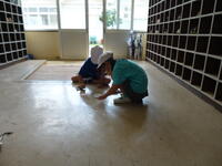 夏休み前に学校をきれいにしましょう。みんなで掃除をしました。