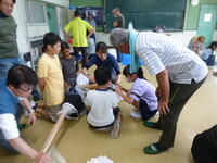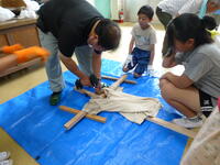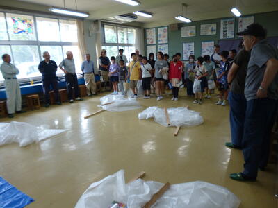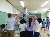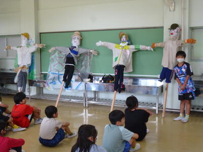 5年生が 案山子作りを地域の方に教えていただきながら行いました。