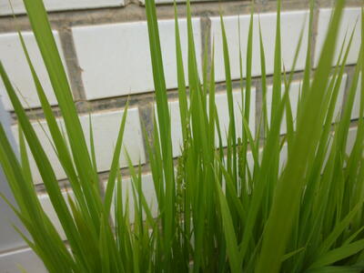 5年生が5月に植えた苗が大きくなり、花を咲かせました。とても小さな白い花です。
