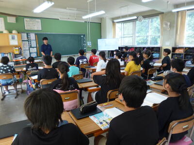 暑さのため、リモートで教室をつないで野田警察の方のお話を聞きました。