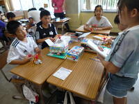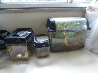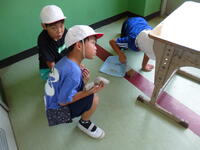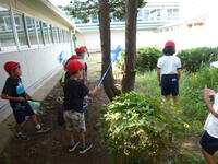 2年生の教室では校庭でつかまえた虫を飼っています。いいおうちができましたね。