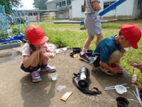 1年生は生活科の学習でシャボン玉遊びをしました。