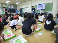 野田市消防署の方から心肺蘇生法やAEDの使い方を教えていただきました。
