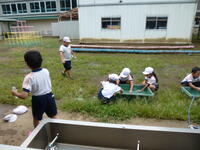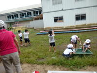 1年生は生活科の学習で水遊びをしました。遠くまで水を飛ばすとおもしろいね。