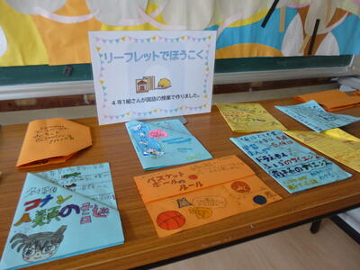 4年生は国語でつくった本のリーフレットを図書室に展示しました。