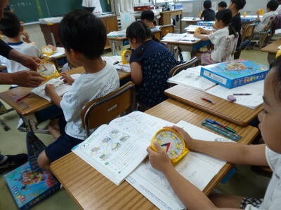 今日も暑くて外で遊べません。休み時間は涼しい室内で過ごしました。