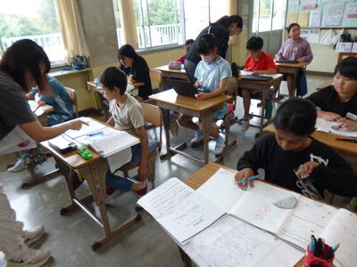 9月初めての「川間タイム」。4年生は算数の問題に取り組んでいます。