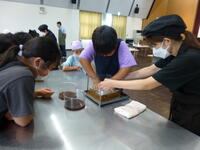 地域の方に教えていただきながら、みんなで力を合わせて稲を刈ります。