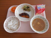 ご飯 牛乳 ブリの照り焼き 小松菜のゴマ和え 豚汁 花みかん