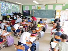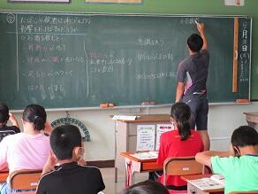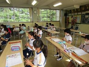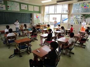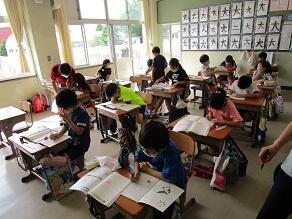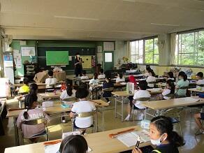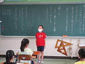 2年生は、夏休みの思い出発表会をしていました。作文を暗記して、みんなの前で堂々と発表できました。