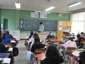 教室でリラックスしていた2年生、机の下に素早く体を入れて机の足をしっかりと押さえていました。