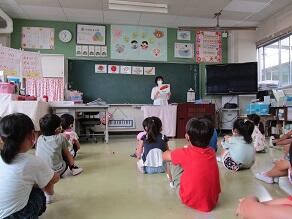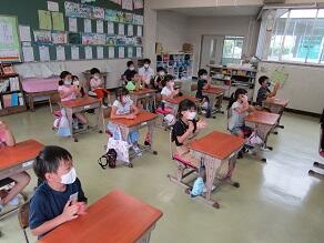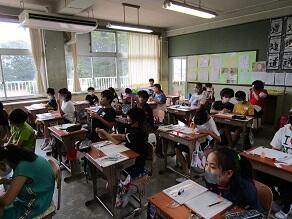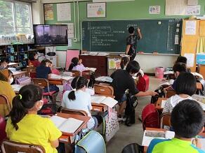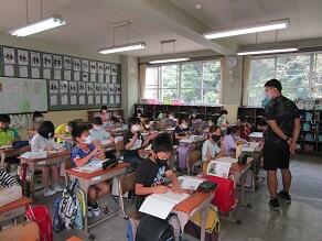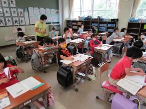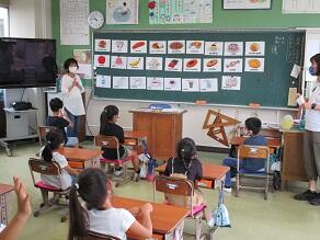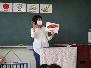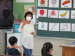1・2年生の外国語活動の講師として、芦澤 都 先生(県特別非常勤講師)が派遣されました。川間小学校でのご指導は、5年目になります。今日は、食べ物や飲み物の単語を教えていただき、みんなで元気よく繰り返していました。年5回授業を行う予定です。