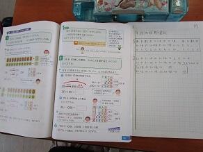 3年生の算数では、ある数の10倍の10倍はいくつになるかを考えていました。20倍?100倍?1000倍?・・・。
