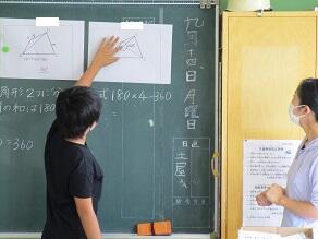 5年生の算数では、どのような四角形でも4つの内角の和がどうして360°になるのか、考えを出し合いました。