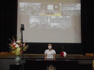 式にふさわしい立派な態度で参加できました。1~4年生の様子は、会場のスクリーンで映されました。