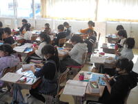 6年 図画工作では、卒業制作の作品「フォト BOX」を彫刻刀で削ったり、色をつけたりして、オリジナルの作品が仕上がってきました。完成が楽しみです。