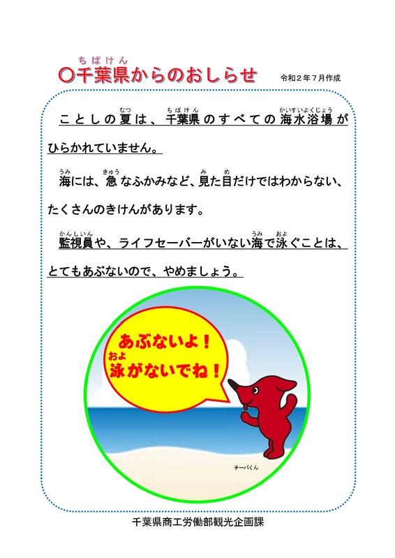 さて、海や川遊びによる水の事故について、数度にわたり注意喚起をしてきたところですが、過日、千葉県内の高校生が海で溺れて亡くなる事故が発生しました。
