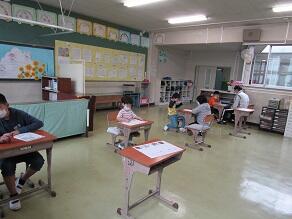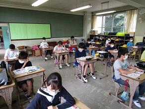 午後の部の様子です。どの学年も、集中して学習しているので感心します。ある教室では、「密です!密ですよ!」なんて声が、自然と聞こえてきました。お互いに声を掛け合って、新たな生活様式を身につけています。
