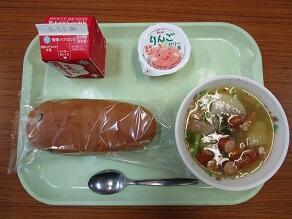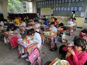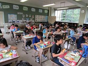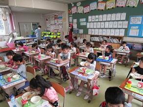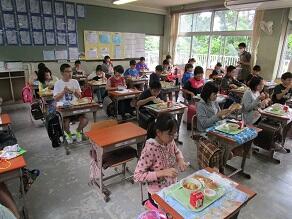 給食も本日より再開です。1年生にとっては、小学校生活初めての給食となりました。