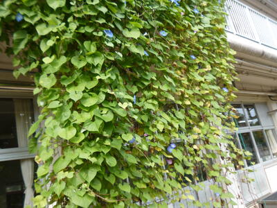 寒くても朝顔?北校舎のベランダにきれいな花が咲いています。