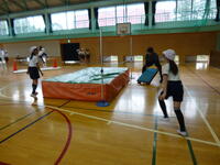 体育で 3年生は 幅跳び 4年生は高跳びにチャレンジ。