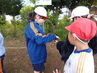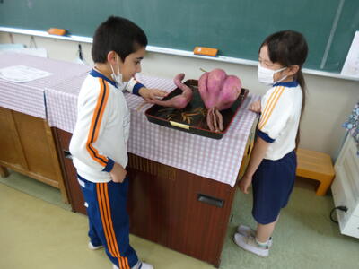 1年生 興味津々です。まるで宇宙人みたいだね。