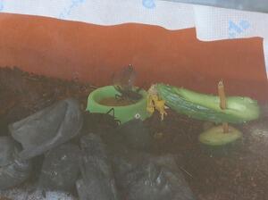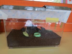 すみれ学級にて スズムシの虫かご スズムシが羽を開いて「リーン、リーン」と鳴いていました