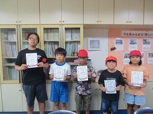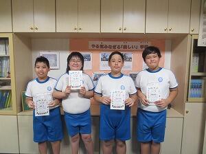 夏休み読書コンテストの表彰を校長室で行いました。一番読んだ冊数が76冊。今後破られないほど素晴らしいと思います。これから読書の秋。たくさん本を読んで、新しい世界を知って、自分の興味関心を広げていってほしいと考えます。
