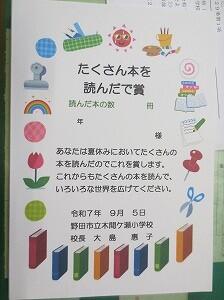 参加人数は、68人でした。10冊以上読んだ児童に賞状を渡しました。