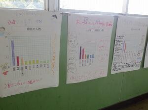 3年生の算数で、グラフの活用の学習をしました。実際の木間ケ瀬小の保健室の活用状況を棒グラフにまとめました。そこからの考察を学校全体に呼びかけました。