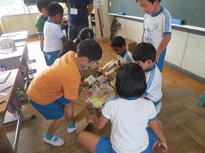 4年 図書室で詩の学習 2年 生活科の廃材で遊びを考える