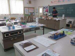 家庭科室にて展示されています。アイデアの詰まった作品がたくさんあります。夏休みに楽しんで、または頭を悩ませながらじっくり取り組んだ姿が目に浮かびます。ぜひお越し下さい。