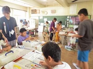 5,6年生の理科の学習が行われていました。校庭花壇のヘチマは、この夏にしっかり水やりを行い、立派に育っています。しかし・・・6年生は、水溶液の性質を理科室にて観察・実験していました。
