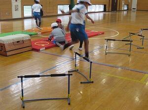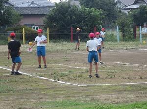ドッジボール 縄跳び練習台にて縄跳びの技を磨く
