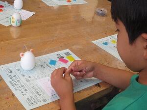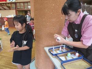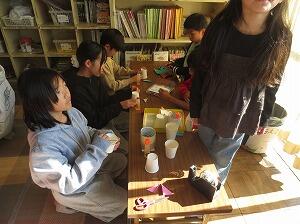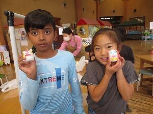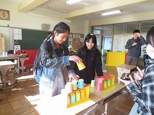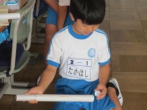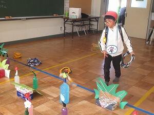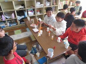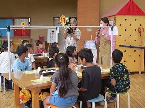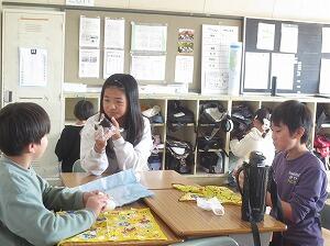 2年生 生活科で作成した手作りおもちゃをお客さんに教えます みんな真剣に作っていました