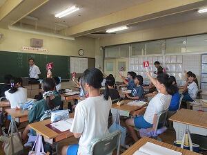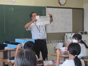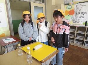 西部防災センター(松戸市)の方を講師に招き、「まなぼうさい」と題して、防災教育の出前授業を行いました。防災センターの方が、ご家族でもぜひ体験に来て下さいとのことでした。5年生が校外学習で行った場所です。