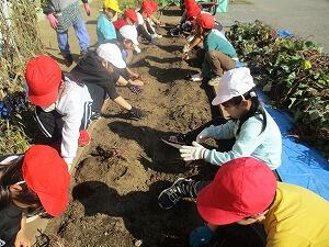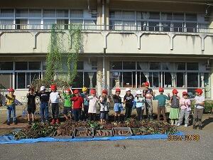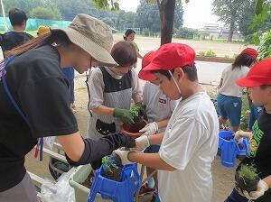ゆりの木学級が、山田先生から植え方を学び、一人一鉢を植えました。育っていくのが楽しみです。
