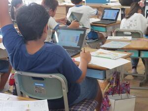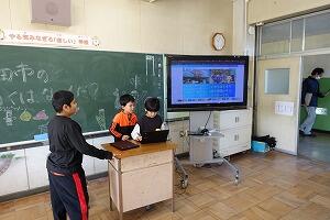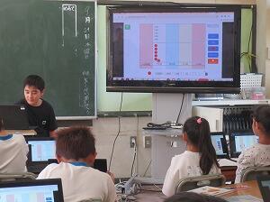 自分たちの発表は慣れたものです 南生田小の児童もパソコンでクイズを