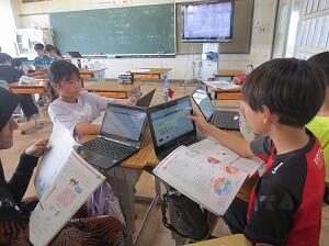 6年生は最後の校外学習(国会議事堂・浅草方面)が迫ってきています。しおりを作成したり、神社のお参りの仕方を調べたりしていました。クラスで調べたことをプレゼンして共通理解を図るそうです。