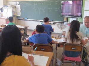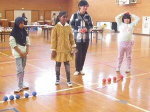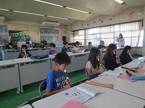 日本語指導はマンツーマン 4年生 算数 サポートティーチャーも3人で 6年生 体育でテニピン
