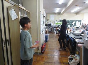 今更ですが毎週火曜日はロング昼休みです。学級で遊ぶ計画を立てるクラスもあり、自由ですが清掃の時間をなくし40分間の休み時間です。校長室にも4名が新たな家庭学習帳をもらいにやってきました。それぞれの過ごし方をしていました。