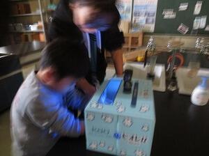 1年生 ひきざんのしんけいすいじゃく 形当てのブラックBOXです 勉強した内容を生かしました
