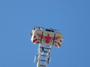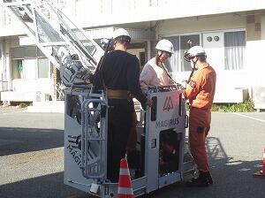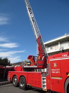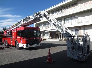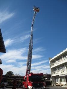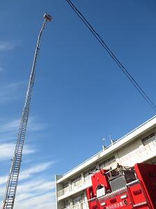 そして、今年きた40メートル届くはしご車です 担任の先生方が代表で体験を・・・