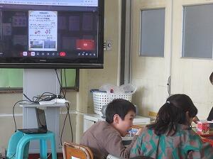 3年生が、川崎市立南生田小学校(神奈川県)の3年生と、オンラインでリモート交流を行いました。2回シリーズで、今回は初回なので顔合わせという目的で、学校紹介をお互いしました。ハウリングしないように5部屋に分かれて行いました。次回はそれぞれの市の紹介、自慢です。楽しみですね。