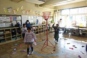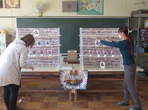 「しゃてき」コーナーの準備 「ぴくみんわなげ」のコーナーの装飾